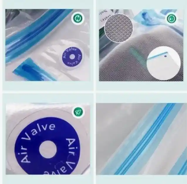 10 BOLSAS CON CIERRE HERMETICO DE EMPAQUE AL VACIO CON VALVULA DE EXTRACCION PARA COMIDA 21X22 MAS 2 BOMBA USO SUGERIDO: Ideal para guardar y conservar la comida, se adapta a neveras de casa, restaurantes o industria. También es perfecto para comida congelada en el hogar. Ideal para guardar comida de forma cómoda como mazorca, granos, pollo, carne, congelados. Al eliminar el vacio de la comida sin preparar esta se conserva mas tiempo sin la necesidad de estar refrigerada. Bolsas reutilizables Fabricado en material PA + PE resistente. Puede usar la misma bolsa para volver a empacar su comida durante varias veces. Tecnología de sellado de doble cremallera con resistencia industrial para funciones herméticas e impermeables. Protegiendo su comida de malos olores, bacterias y otras partículas dañinas. Especial para empacar y conservar comida al vacío reducen del 50% al 95% del volumen inicial de las cosas. Ideal para empacar o colgar ropa delicada o comida y para viajes largos donde tienes poco espacio.