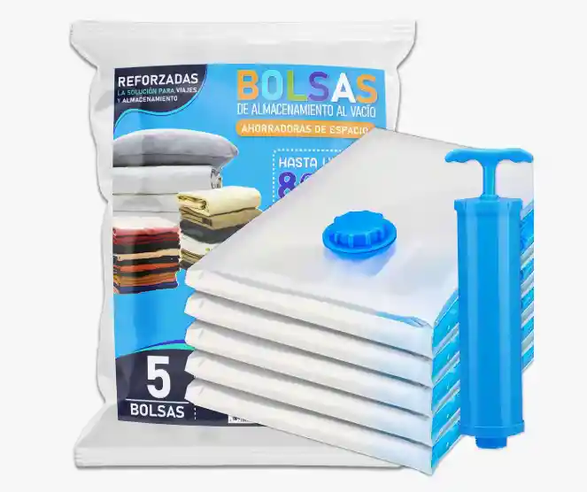 Optimiza tu espacio y organiza tu hogar con las 5 Bolsas de Empaque al Vacío de la marca Lilito. Con unas dimensiones de 70 cm de largo y 50 cm de ancho, estas bolsas son ideales para almacenar ropa, mantas y otros artículos voluminosos, permitiendo que aproveches al máximo cada rincón de tu hogar. El modelo Hug Saver 5-50x70-1b incluye una bomba que facilita el proceso de extracción de aire, asegurando un sellado hermético que protege tus pertenencias del polvo, la humedad y los olores. Además, su diseño reutilizable te permite utilizarlas una y otra vez, contribuyendo a un estilo de vida más sostenible. Cada bolsa cuenta con una válvula que garantiza un sellado eficiente, lo que significa que tus artículos permanecerán en perfectas condiciones durante mucho tiempo. Con estas bolsas, no solo ahorrarás espacio, sino que también mejorarás la organización de tu hogar, haciendo que cada cosa tenga su lugar. Transforma la manera en que almacenas tus pertenencias y disfruta de un hogar más ordenado y funcional. Las Bolsas de Empaque al Vacío Lilito son la solución perfecta para quienes buscan maximizar su espacio sin sacrificar la calidad y la protección de sus artículos.