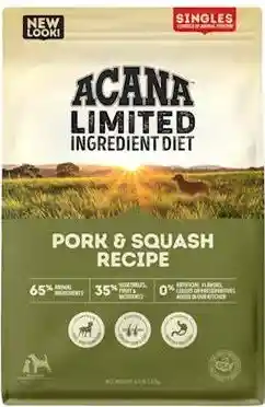 Completamente libre de concentrados de proteínas vegetales, ACANA Pork Squash contiene un 50% de Yorkshire cerdo -más del doble de carne que la mayoría de los alimentos para perros de ingredientes limitados. Además, todo nuestro cerdo está considerado apto para el consumo humano previo a su inclusión en nuestros alimentos. ACANA Pork Squash ofrece una sola proteína animal de fácil digestión. Carne de cerdo fresca, órganos y cartílago, las cuales se entregan diariamente en proporciones de PresaEntera, aportando prácticamente todos los nutrientes necesarios, vitaminas y aminoácidos de una forma completamente natural.