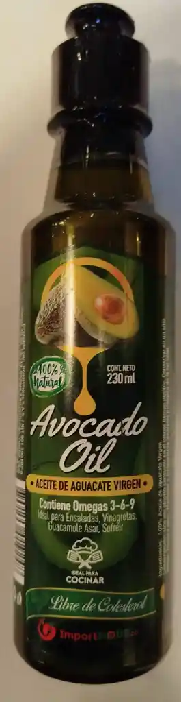 🥑 Aceite Virgen de Aguacate Aceite 100% natural extraído de la pulpa del aguacate, conservando su color verde intenso y propiedades nutricionales. Destaca por su sabor suave y ligeramente vegetal, ideal para preparaciones frías y calientes. Tipo: Virgen Perfil: Suave, fresco y ligeramente frutal Uso ideal: Ensaladas, aderezos, salteados, parrillas y cocina saludable Beneficios: Rico en grasas monoinsaturadas y vitamina E Perfecto para quienes buscan una alternativa saludable y versátil en la cocina.