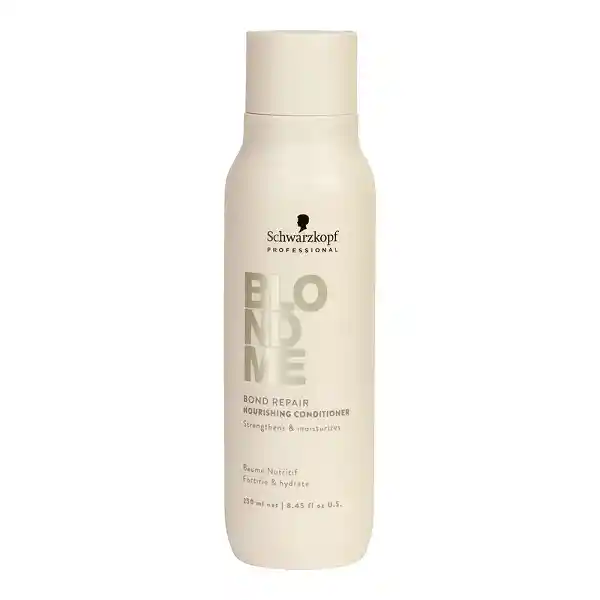 El Acondicionador Nutritivo Bond Repair de BLONDME, con la TECNOLOGÍA BOND REPAIR, nutre y desenreda al instante el cabello rubio sin apelmazarlo, dejando el cabello con una sensación de hidratación. Fortifica el cabello creando puentes internos reparando los daños equivalentes a dos servicios de aclaración tras un solo uso. Su fórmula nutritiva contiene Aceite de Almendras y Té Blanco que dejan el cabello suave y flexible y con un brillo de aspecto sano.