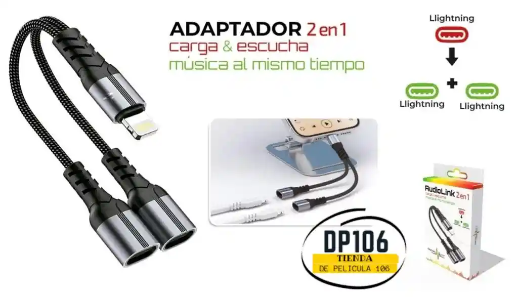 carga y escucha musica al tiempo lighting a 2 puertos de lightning