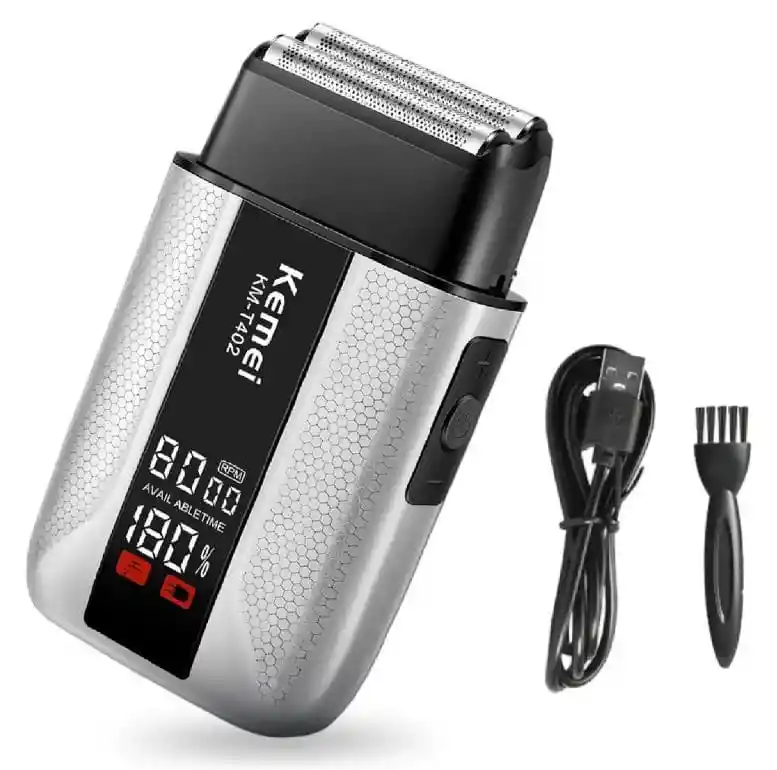 ¡Logra el Afeitado Perfecto en Minutos con la Kemei KM-T402! ¿Cansado de las irritaciones y de máquinas que se quedan sin batería a mitad de camino? La nueva Kemei KM-T402 es la herramienta definitiva para el hombre moderno que busca un look impecable, ya sea para una cabeza totalmente lisa o una barba bien perfilada. [POR QUÉ ELEGIR ESTA MÁQUINA] Potencia Extrema de 8000 RPM: Equipada con un motor de 3 velocidades que corta hasta el vello más grueso sin tirones. Protección IPX7 (100% Impermeable): Úsala en seco para un retoque rápido o bajo la ducha con espuma para una experiencia más suave. ¡Es totalmente lavable! Batería de Larga Duración: Olvídate de los cables. Con su batería de 1400 mAh, obtienes 90 minutos de uso continuo con solo 2 horas de carga vía USB. Higiene Avanzada con Luz UV: Incluye una función de esterilización automática para mantener las cuchillas libres de bacterias y proteger tu piel. Pantalla LED Inteligente: Controla en tiempo real la velocidad del motor y el porcentaje exacto de batería restante. ¡Nunca te quedarás a medias! [ESPECIFICACIONES TÉCNICAS] Modelo: Kemei KM-T402 Dimensiones: 19 cm x 13 cm x 5 cm Tipo de Carga: USB (Universal) Material: Cabezal de malla resistente de alta precisión. Extras: Incluye cepillo de limpieza y cable de carga. [LO QUE RECIBES EN TU PAQUETE] Afeitadora Profesional Kemei KM-T402. Cable de carga USB. Cepillo de limpieza. Manual de usuario.