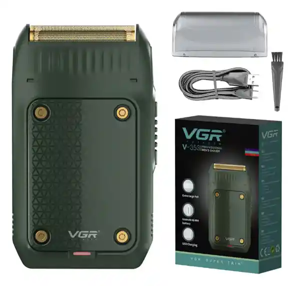 ¡La VGR V-353 es la afeitadora eléctrica (shaver) profesional que todo barbero y hombre moderno necesita! Conocida también como A-Sheiver VGR V-353, esta afeitadora de lámina (foil shaver) ofrece un afeitado ultra cercano, suave y preciso, ideal para terminar la barba, contornos, cuello y rostro sin irritación. Características principales: Marca: VGR Modelo: V-353 Hoja de lámina ultra fina de acero inoxidable para un corte muy cercano Motor potente y silencioso Batería de litio recargable (hasta 60 minutos de autonomía) Carga rápida por USB Diseño compacto, ligero y ergonómico (fácil de manejar) Incluye tapa protectora y cepillo de limpieza Perfecta para piel sensible – reduce irritación y rojeces Usos ideales: Afeitado final de barba (finish shave) Contornos y líneas limpias Cuello, mejillas y rostro completo Uso diario o profesional en barberías Ventajas: Afeitado extremadamente cercano y suave Muy económica pero de excelente calidad Portátil y perfecta para viajar Fácil de limpiar (se puede lavar la cabeza) Contenido del paquete: 1 Afeitadora VGR V-353 Cable de carga USB Tapa protectora Cepillo de limpieza Ya sea para uso personal o en tu barbería, la VGR V-353 te dará resultados profesionales a un precio increíble. ¡Un clásico entre los barberos por su relación calidad-precio!