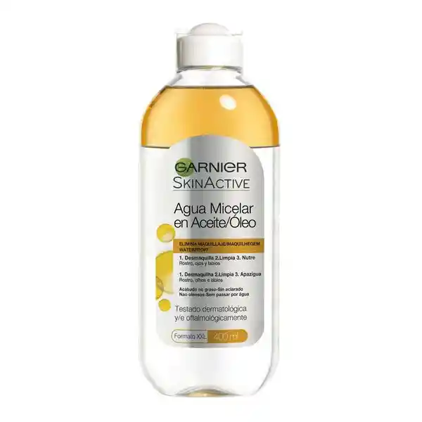 El Agua Micelar en Aceite de Garnier es un limpiador facial que nutre. desmaquilla y limpia ojos. labios y ros...Ver más