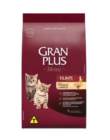 GranPlus Menú Gatitos Pollo y Arroz es un alimento High Premium especialmente formulado para cubrir las necesidades nutricionales de los gatitos en etapa de crecimiento. Elaborado con ingredientes nobles y cocido al vapor, ayuda a mantener una alimentación saludable y altamente palatable. Su fórmula, libre de colorantes y aromas artificiales, contiene omega 3 (EPA y DHA) que contribuye al óptimo funcionamiento del organismo, además de fibras y prebiótico MOS que apoyan la salud intestinal y favorecen una digestión adecuada. Incluye glucosamina y condroitina, que contribuyen al desarrollo de articulaciones fuertes durante el crecimiento.