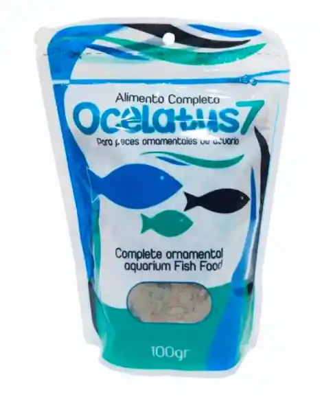 OCELATUS 7 (Alimento para Peces Ornamentales). Alimento en hojuelas, firmes suaves, delgadas, elementos claves que facilitan la ingestión de los peces. Este producto proporciona una alimentación balanceada. Estimula la energía, longevidad y salud de los peces. Realza los colores naturales de los peces, fortalece el sistema inmunológico y fomenta la reproducción, mientras conserva el agua limpia. Está dirigido a todos los peces ornamentales de agua dulce, en sus diferentes etapas de vida. Ideal para peces tropicales y goldfish. No contiene proteína de animales terrestres. *Características del producto* 🐠 Mezcla de vitaminas y minerales: Ayuda a un crecimiento sano y aumenta la resistencia a las enfermedades.