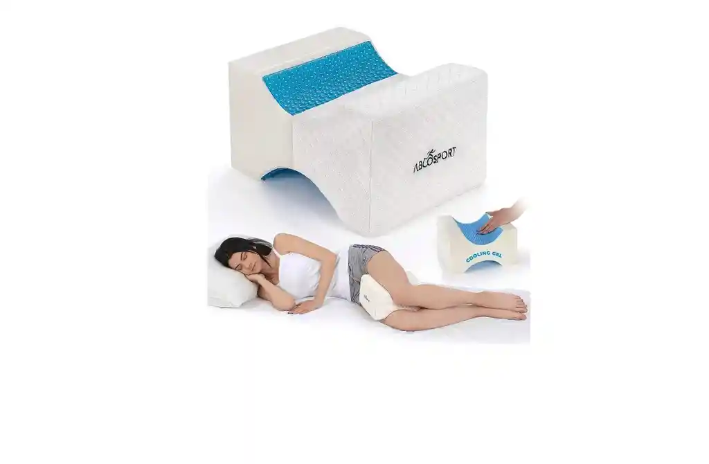 Abco Tech Almohada de rodilla de espuma viscoelástica con gel refrescante, almohada de cuña de rodilla, almohada de piernas para dormir de lado, embarazo, alineación de la columna vertebral, alivio • Postura correcta para dormir: la postura correcta para dormir mejora el flujo sanguíneo para un sueño reparador, lo que te permite despertar sintiéndote libre de estrés.