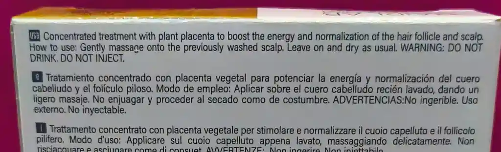 Energizante Capilar, Extracto de Romero, Sin ejuagado, Tratamiento concentrado con placenta vegetal para potenciar la energia y normalizacion del cuero cabelludo y el foliculo piloso.