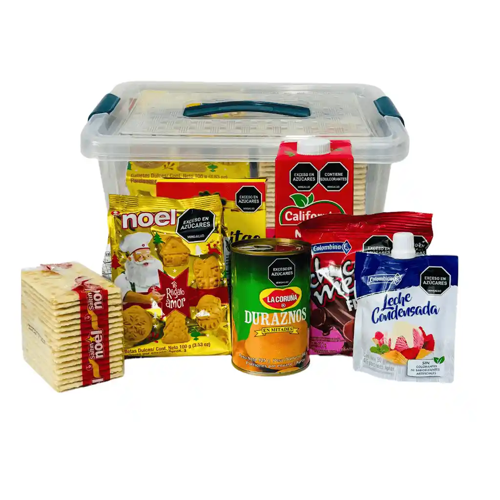 “Bella Navidad” es una ancheta navideña perfecta para sorprender con un detalle completo, tradicional y lleno de sabor; incluye jugo California 🥤, galletas navideñas Noel 🍪, natilla clásica, masmelos cubiertos, duraznos en lata 🍑, leche condensada y galletas de soda, todo presentado en una caja organizadora plástica con moño que resalta la presentación y permite reutilizar el empaque. Es una opción ideal para empresas, clientes y familias que desean un regalo abundante, práctico y representativo de la temporada decembrina. Te podemos obsequiar una tarjeta si nos envías el mensaje para que acompañes tu detalle.