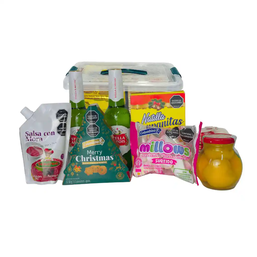“Esencia Pura” es una ancheta navideña premium ideal para sorprender con un detalle moderno y lleno de sabor; incluye 2 cervezas Stella 🍺✨, galletas navideñas en forma de árbol 🍪🎄, natilla tradicional, mermelada, masmelos suaves, galletas de soda y duraznos en almíbar 🍑, todo presentado en una caja organizadora plástica con moño que mejora la presentación y permite reutilizar el empaque. Es una opción perfecta para clientes, colaboradores o familias que buscan un regalo navideño completo, actual y con una presentación impecable. Te podemos obsequiar una tarjeta si nos envías el mensaje para que acompañes tu detalle.