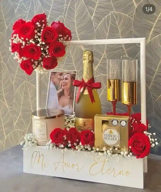 Anchetas, desayunos sorpresa y detalles para cumpleaños, aniversario, amor y amistad, Día de la Madre, Mujer, Niño, Navidad y San Valentín. Incluye flores, chocolates, peluches y fresas con chocolate. - Vino - Portaretrato - Vaso personalizado - Chocolates - Copas - Flores - Caja decorada - Tarjeta dedicatoria Adiciones: - Globo burbuja marcado 15,000 - Arreglo floral 50.000 - Peluches desde 20.000