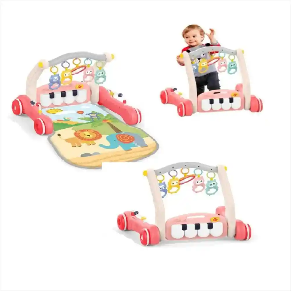 ANDADERA GIMNASIO Piano Caminador 2 en 1, con actividades, luces y alfombra para bebé. – Contiene un barral suave, una alfombra confortable, espejo, sonajeros divertidos, sonidos y cambio de modo (4 melodías, notas musicales y completa la melodía) – Además tiene un regulador de ángulo para poder jugar acostado o sentado y es muy fácil de ensamblar. Ayuda a: – Entrenamiento con los dedos – Sentido táctil – Entrenamiento visual – Entrenamiento de extremidades – Entrenamiento auditivo – Requiere 2 pilas AA (NO VIENEN INCLUIDAS).