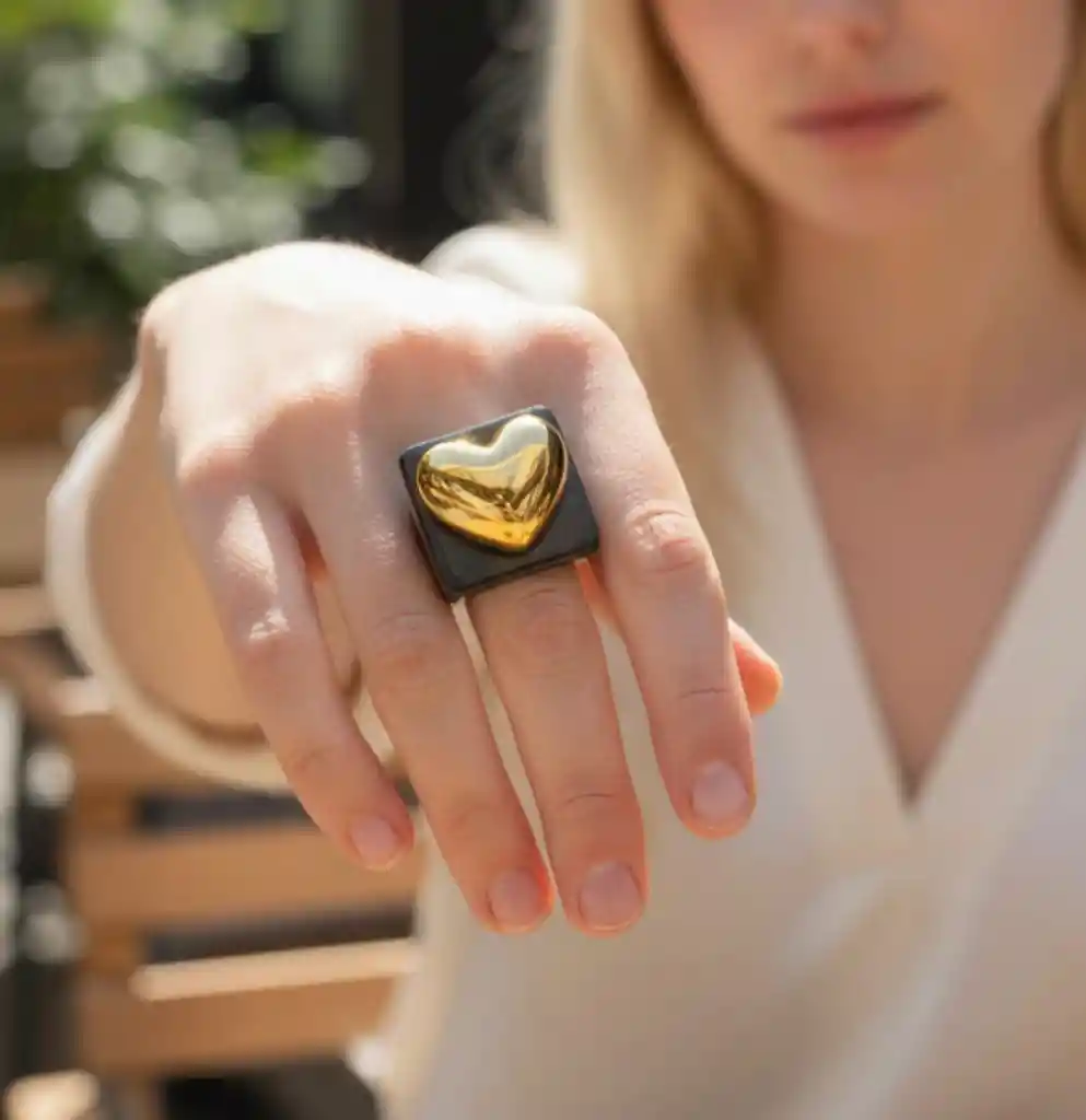 Anillo en resina negro corazon talla 7