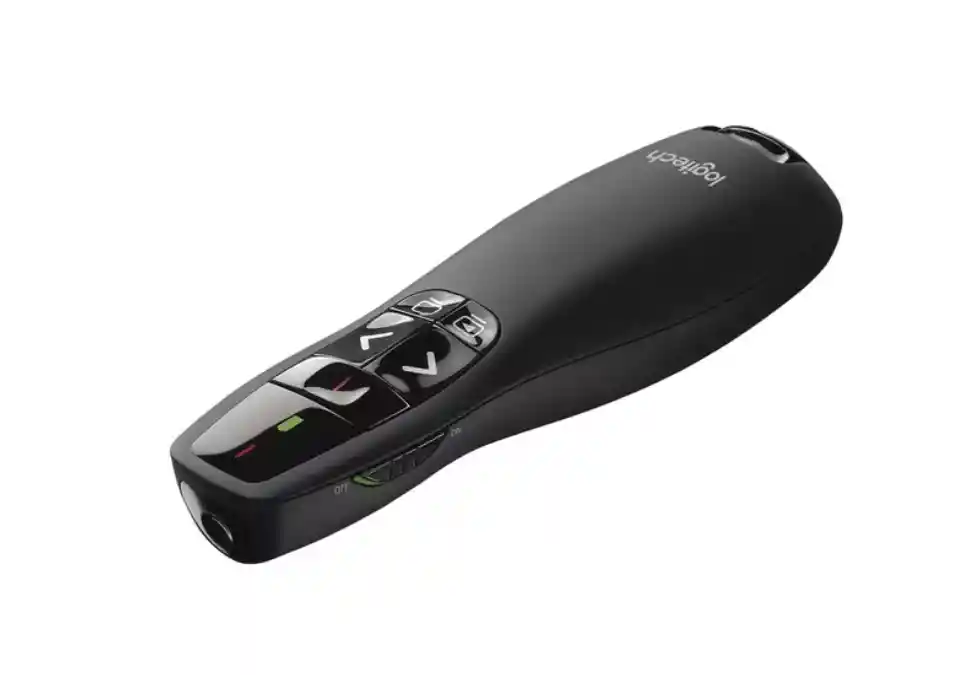 El presentador Logitech R400 está diseñado para ayudar a exponer sus ideas. Sus controles de diapositivas colocados de forma intuitiva le ayudan a encontrar los botones fácilmente al tacto, para que pueda recorrer sus presentaciones con toda confianza. Además, contará con un puntero de láser rojo, un receptor de fácil conexión almacenable y una radio de acción de hasta 15 metros. Caracteristicas Especificas: Conectividad: USB Compatibilidad: Windows Software: PowerPoint Alimentación: Dos baterías AAA Puntero: Láser rojo Radio de acción inalámbrico: 15 metros