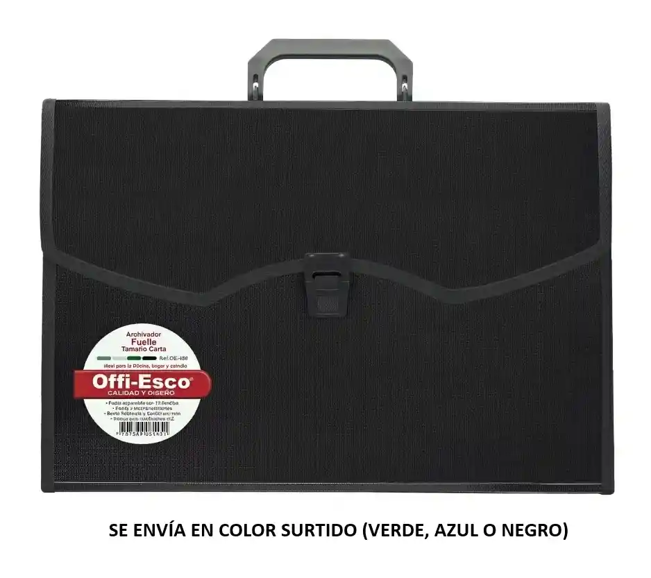 ARCHIVADOR DE FUELLE EXPANDIBLE TIPO ACORDEON CON 13 BOLSILLOS. TAMAÑO OFICIO 39 x 26.3 x 2.7 cm. IDEAL PARA LA OFICINA, HOGAR Y ESTUDIO. BORDE REFOZADO Y COSIDO, EN LONA. INCLUYE GUIA CLASIFICADORA AZ. MANIJA Y BROCHE RESISTENTE. MARCA OFFI ESCO REF. OE-455. SE ENVÍA UNA UNIDAD EN COLOR SURTIDO