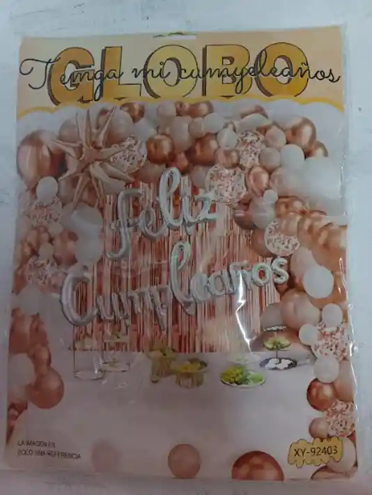 Contiene 72 piezas: -1 mantel. -1 cortina - globos látex R12 oro rosa. - globos latex R5 - globos confeti R12. -1 cinta para colgar. -1 rollo de puntos de pegamento. -3 Piezas (letrero) Este producto no se vende inflado, te llega todo dentro de un paquete.
