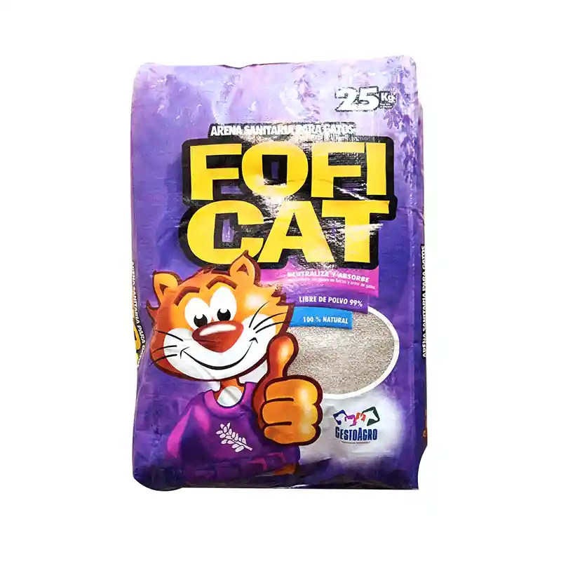Arena Sanitaria Fofi Cat Lavander Arena super aglomerante de fina granulación, 0% de humedad, 100% natural y libre de polvo en un 99%. Neutraliza y absorbe rápidamente los olores de las heces y la orina de los gatos con su esencia a Lavander y controla la humedad de las mismas.