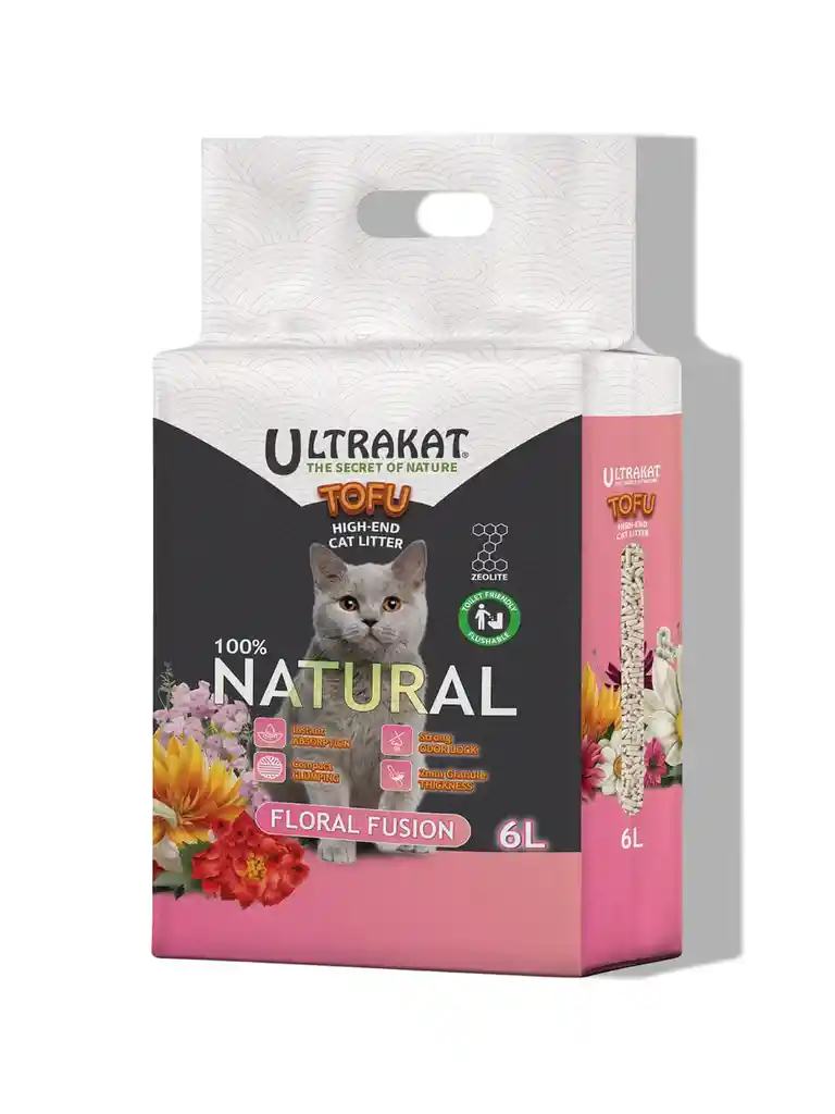 Descubre una alternativa ecológica y práctica para el cuidado de tu gato con la Arena Tofu Ecológica Floral Fusion. Fabricada 100% con tofu natural, esta arena biodegradable protege el medio ambiente mientras ofrece un espacio fresco y limpio para tu mascota gracias a su delicado aroma floral. La arena de tofu para gatos es una opción de arena sanitaria para gatos hecha a partir de residuos de soja, que es biodegradable y una alternativa ecológica a las arenas tradicionales. Se caracteriza por ser suave en las patas de los gatos, controlar olores, y ser fácil de limpiar. Además permiten desecharla por el inodoro, lo que la hace aún más conveniente para el dueño. Sostenible y natural: Ingredientes que se descomponen fácilmente, reduciendo la contaminación. Alta absorción: Forma grumos compactos para una limpieza sencilla y rápida. Control efectivo de olores: Neutraliza malos olores dejando un agradable aroma floral. Grosor del granulo de 2mm Seguridad para tu gato: Libre de químicos y aditivos dañinos. Fácil eliminación: Grumos solubles en agua, aptos para desechar en el inodoro (verifica normativas locales).
