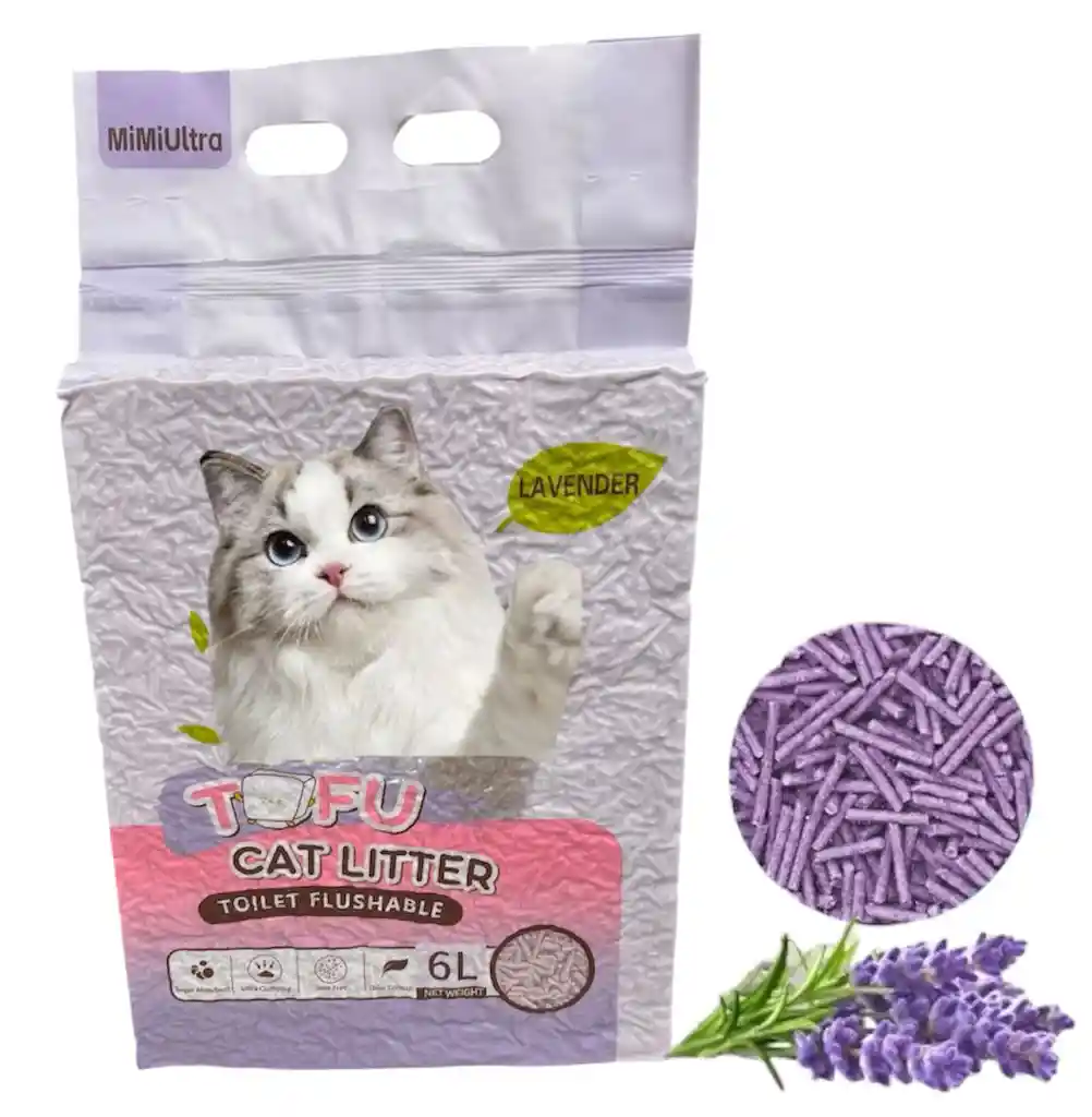 Arena tofu 2.5 kg Cat Litter Lavanda Biodegradable Máximo rendimiento Neutralizador olor