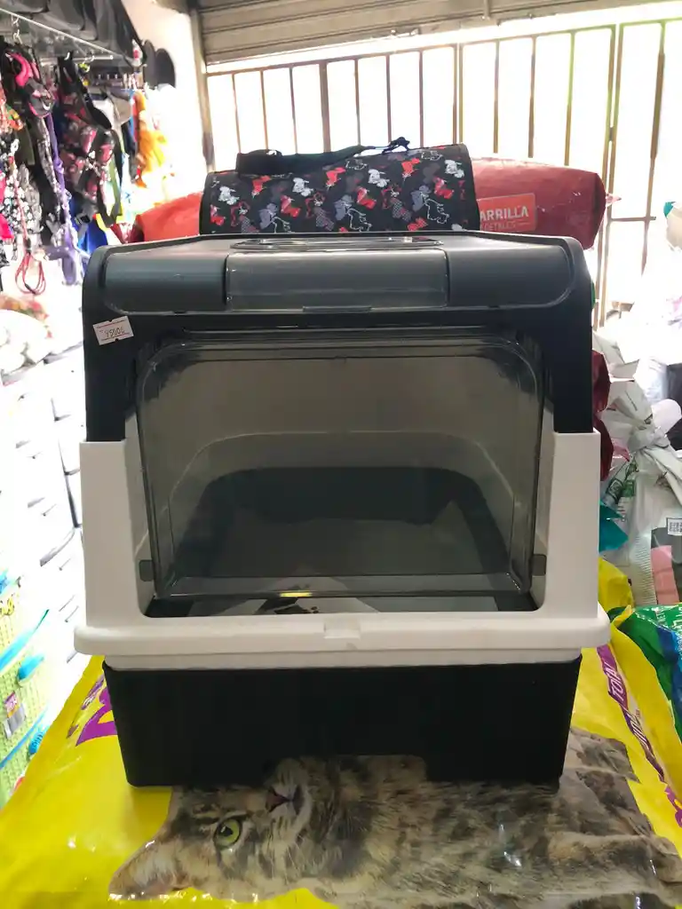 UN ARENERO MUY COMPLETO IDEAL PARA GATOS NO MUY GRANDES CUENTA CON-- DOBLE SALIDA--PLANCHA RETIRABLE PARA ASEO FACIL--FILTRO Y PALA--UN FILTRO DE REPUESTO