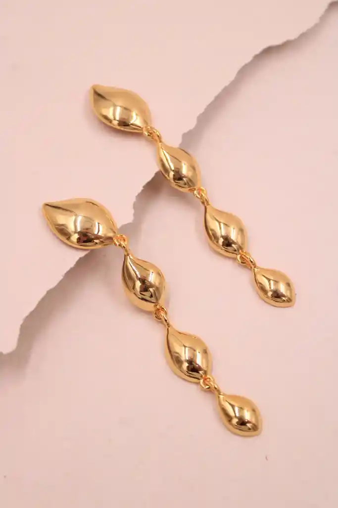 Aretes colgantes de rodio hipoalergénico con diseño de hojitas doradas.