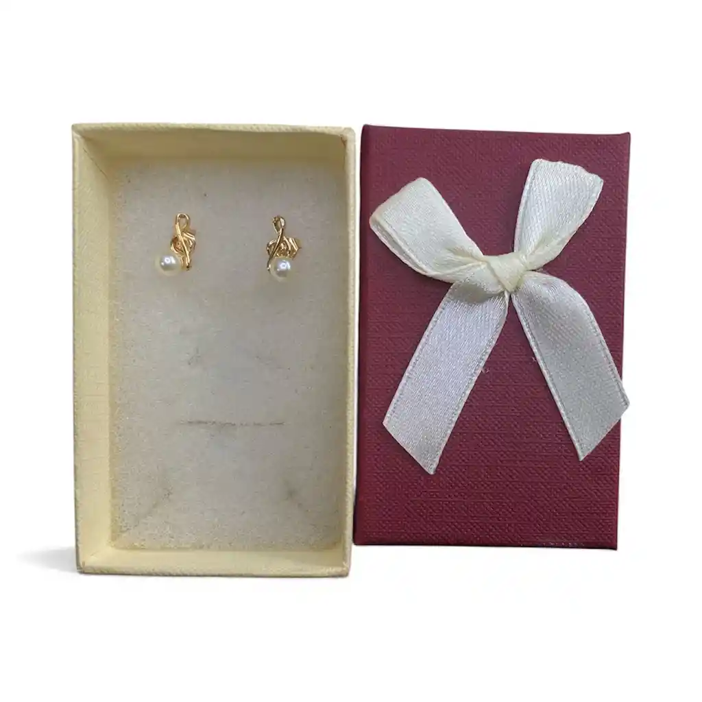 Aretes Tipo Topo Con Diseño De Letra Musical Con Detalle De Una Perla Pequeña En Rodio