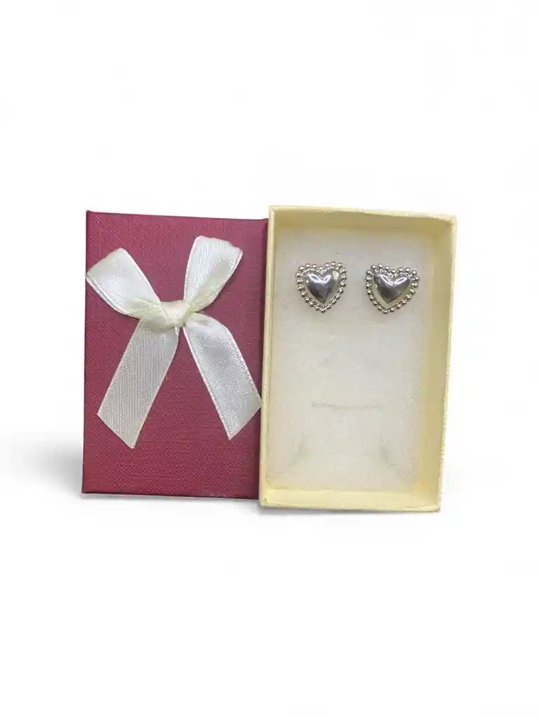 Aretes Tipo Topo Diseño De Corazon Grande Color Plateado De Rodio