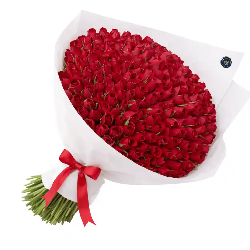 Un regalo majestuoso e inolvidable que expresa amor absoluto en cada pétalo 🌹✨. Incluye un bouquet con papel coreano y doscientas rosas frescas, decorado con un moño elegante. Si nos envías tu mensaje, te obsequiamos la tarjeta personalizada para expresar tus sentimientos de manera única. REF: FLW18