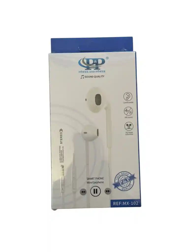Audífonos Alámbricos P&P MX-102 – Sonido Hi-Fi y Comodidad Todo el Día Disfruta tu música con gran calidad gracias a los audífonos P&P MX-102, diseñados para ofrecer un sonido nítido, cómodo y estable. Cuentan con reducción de ruido, micrófono integrado y controles para cambiar canciones o contestar llamadas fácilmente. Perfectos para uso diario, estudiar, trabajar o entrenar. Características: Sonido Hi-Fi con bajos balanceados Diseño ergonómico cómodo para uso prolongado Reducción de ruido para llamadas más claras Micrófono integrado y control de reproducción Compatibles con smartphones, tablets y más Conector universal de 3.5 mm Referencia: MX-102 Color: Blanco
