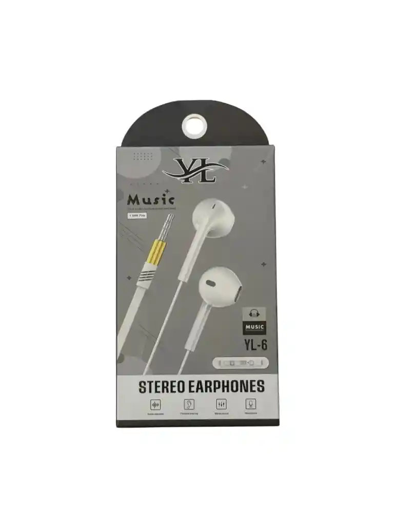 Audífonos Alámbricos YL-6 Audífonos estéreo con diseño cómodo y conexión por conector 3.5 mm. Ofrecen sonido claro para música, videos y llamadas, además de controles integrados para manejar fácilmente el volumen y la reproducción. Una opción práctica para el uso diario.