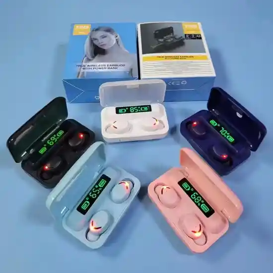 Características generales: Modelo: F9-5 V 5.3 Con micrófono y modo manos libres Asistentes de voz integrados Usos aptos para deporte Accesorios incluidos: Cable de carga, Almohadillas, Manual Resistente al agua con clasificación IPX5 Funciones de control: Control de canciones, Control de llamadas, Control de volumen Especificaciones: Formato del audífono: In-ear Conectividad inalámbrica y Bluetooth con un alcance de 10 metros Tecnología TWS y versión Bluetooth 5 Sonido con unidad de diafragma de 8 mm, impedancia de 32 Ω Batería: Duración de la batería del audífono de 5 horas con capacidad de 50 mAh Capacidad de la batería del estuche de carga de 1200 mAh, incluido en el paquete} Diseño deportivo: diseño ergonómico y ligero que se adapta cómodamente y cómodamente a tu oído con la máxima estabilidad. Adecuado para llevar durante un tiempo prolongado mientras corres, haces ejercicio, ciclismo, senderismo, etc Pantalla LED de alimentación y batería de 2000 mAh: auriculares Bluetooth con caja de carga de 2000 mAh, tiempo de conversación de hasta 6 horas. Pantalla LED inteligente, puedes ver el estado de carga de los auriculares y el banco de energía utilizando la pantalla LED. También puedes cargar otros dispositivos USB utilizando el puerto USB integrado en la funda de carga. Resistente al agua y al polvo: IPX7 impermeable garantiza que los auriculares Bluetooth sean resistentes al sudor y a la lluvia, lo que los convierte en un compañero perfecto para el deporte. Los puertos de carga de la funda tienen una cubierta de silicona para evitar que el polvo se acumule dentro del puerto de carga y el puerto USB. Micrófono integrado: soporta llamadas manos libres. Responder/rechazar llamadas y activar SIRI sin recoger tu teléfono Control táctil inteligente y operación de emparejamiento fácil: toca suavemente el auricular para saltar canciones, ajustar el volumen y contestar llamadas de teléfono. Con una operación de emparejamiento de un paso, coge los dos auriculares de la funda de carga, y se emparejarán automáticamente. A continuación, simplemente activa la conexión Bluetooth en tu teléfono móvil para emparejar el dispositivo con tus auriculares