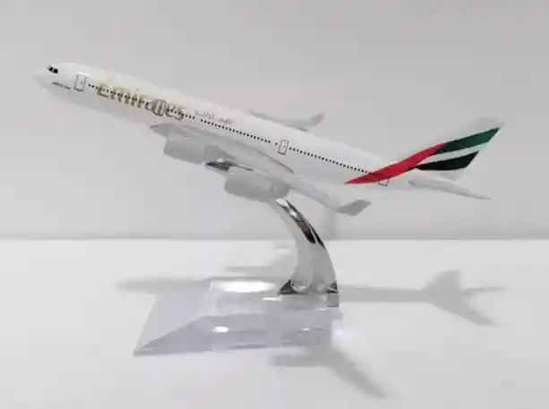 ¿Cómo pedir Avion Pequeño Metalico De Acero Coleccionable De Emirates Airbus A340 - Largo 16cm + Soporte en Rappi?