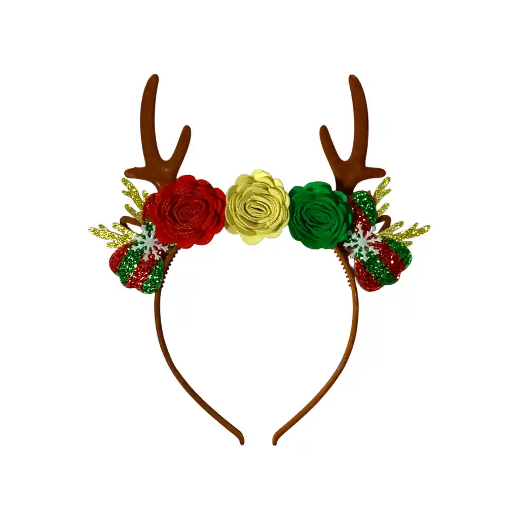 Balaca Diadema Navidad Diseño Reno Y Flores Navideño