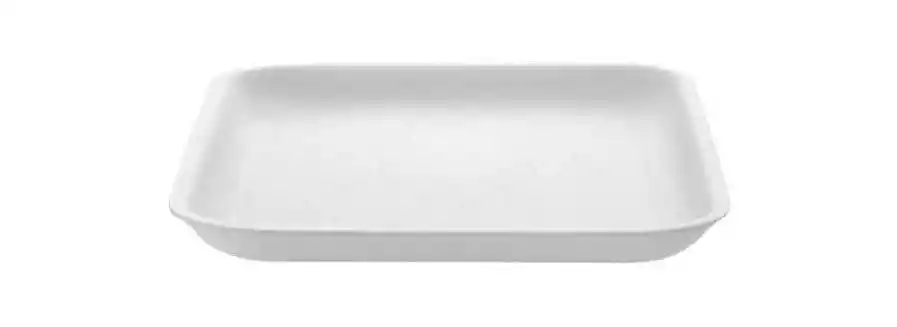Bandeja #7 medida es aproximadamente 21.3 cm de largo por 15 cm de ancho, ideal para alimentos, frutas y verduras, fabricada en espuma (icopor) 7x7 pulgadas.
