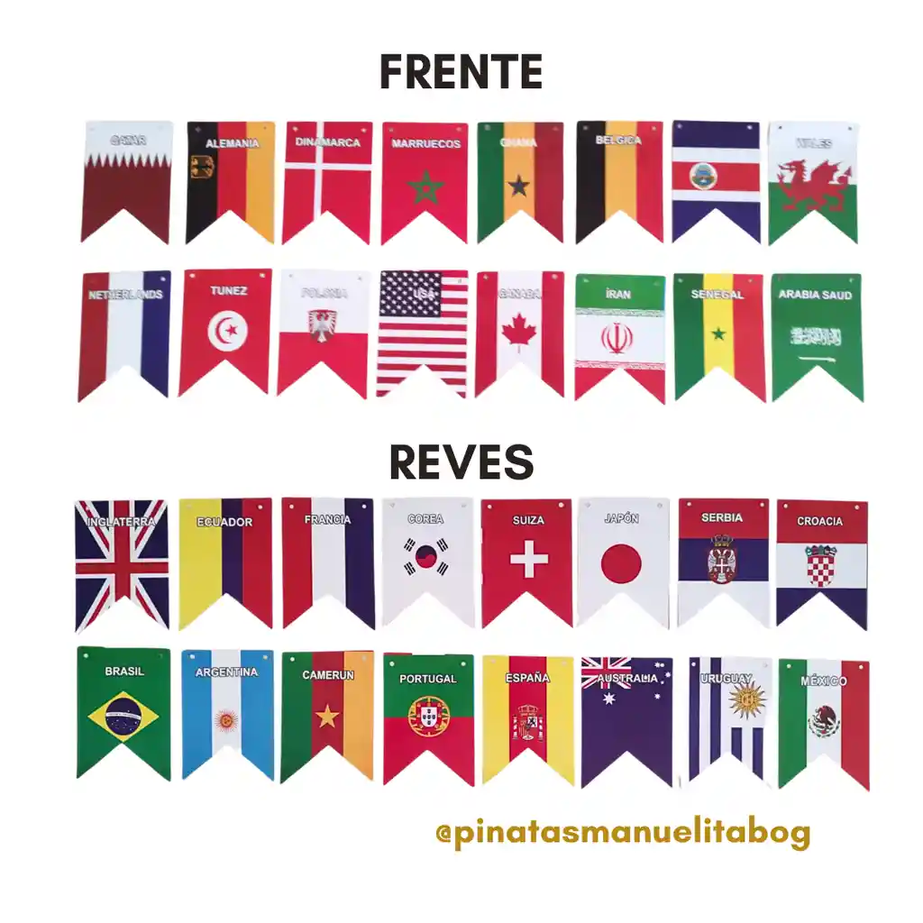 Banderas en papel estampadas con países, tamaño de cada una 17 cm de alto.