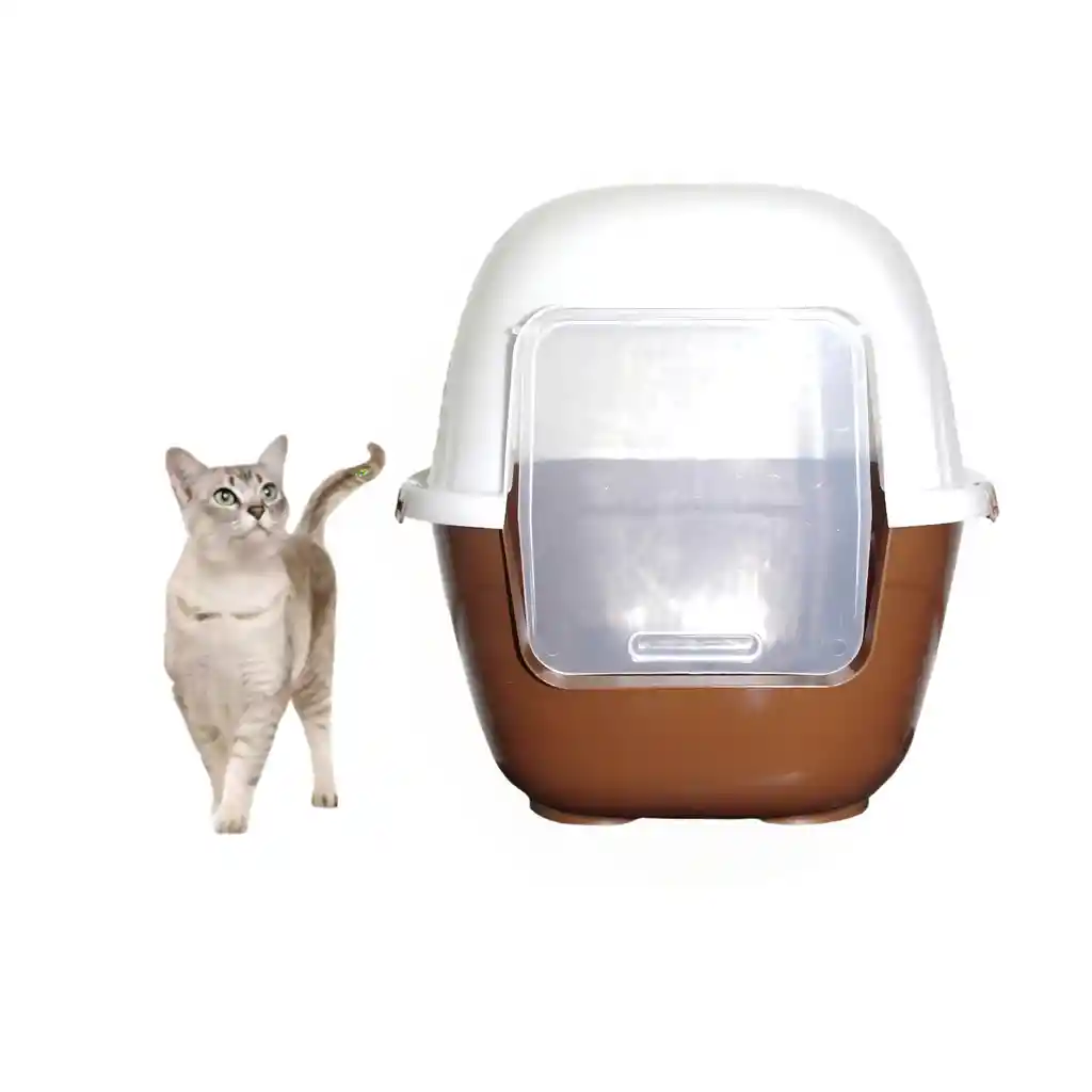 Bienvenido somos Hally Pets tu mejor aliado para el cuidado de tu hijo Perruno y/o Gatuno. Baño Arenero Grande para gatos Este tipo de baño iglu es ideal para que sus gatos entre a hacer sus necesidades de manera fácil, al ser un baño cerrado retiene gran parte del olor, tiene una puerta amplia para que el gato pueda entrar y salir sin ningún problema, tiene un amplio espacio interior Al momento de la limpieza se deben retirar los seguros para retirar la arena. Etapa : Cachorros y Adultos Material : Plástico Tamaño del Baño Profundidad: 51 Cm Alto: 44 Cm Ancho 42 Cm Tiene Manija Cuatro seguros Tamaño de la Puerta Ancho: 22 Cm Alto: 22 Cm