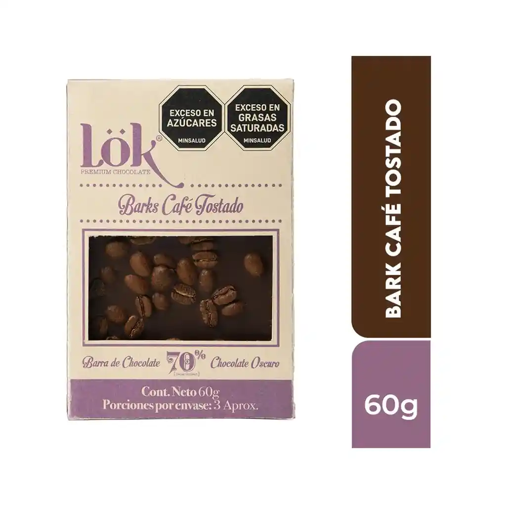 🍫 BARK 60 g LÖK Chocolate 70% Café Tostado Chocolate premium con 70% cacao, combinado con notas intensas de café tostado que realzan su carácter profundo y aromático. Ofrece un equilibrio entre amargor elegante, matices tostados y un final persistente en boca. Contenido: 60 g Perfil: Cacao intenso con notas marcadas a café y tostado. Ideal para amantes del chocolate oscuro y del café, perfecto para acompañar espresso, vinos tintos o disfrutar como snack gourmet.