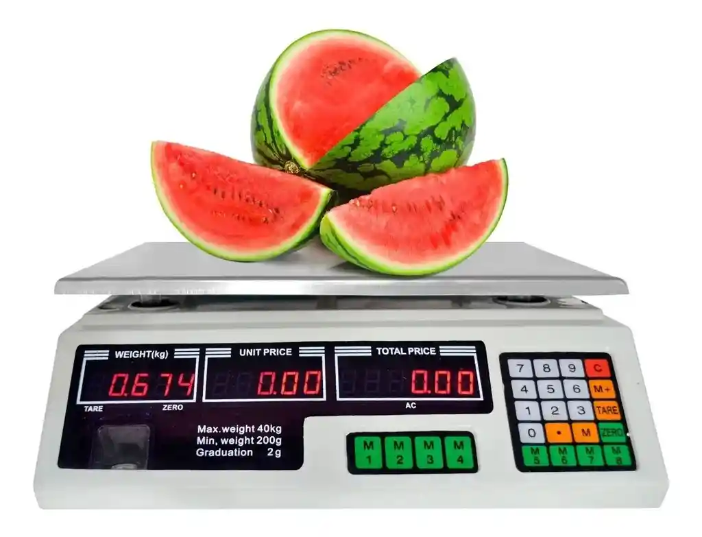 Bascula Electronica Balanza Digital Gramera 40kg Información técnica - Dimensiones:34.5 x 23cm - Capacidad: - Material: Plástico y acero - Alimentación: 110v - Pantalla LCD retro iluminada HD - Color: plateado blanco y negro - Duracion de bateria de 20 horas -Incluye cargador Otros datos - Función de cuenta, recuerdo, cambio y memoria clara una vez - Función de apagado automático para ahorrar energía. - Ventana de visualización: ventana de peso y de precio unitario de 5 dígitos; precio total de 6 dígitos. El paquete incluye: - 1 báscula digital de precios. - 1 manual de usuario - 1 cargador