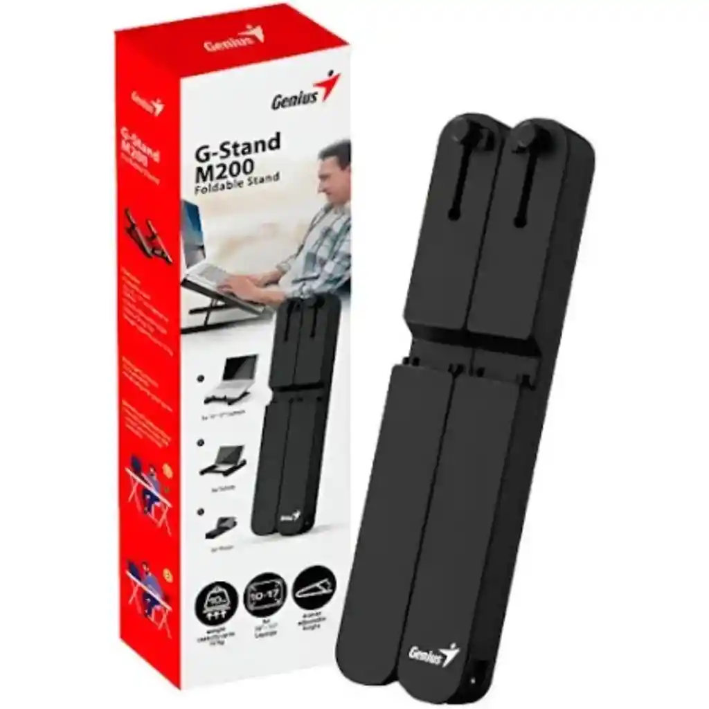 💻✨ Base Ajustable Portátil Genius G-STAND M200 – Comodidad y ergonomía donde la necesites ✨💻 La Genius G-STAND M200 es el complemento perfecto para trabajar, estudiar o disfrutar de tus contenidos con mayor comodidad. Su diseño plegable, ligero y resistente te permite ajustar la altura y la inclinación del portátil para mejorar tu postura y reducir la fatiga en cuello y espalda durante largas jornadas. Compatible con portátiles y tabletas de 10 a 17 pulgadas, cuenta con 6 niveles de ajuste de altura y un clip de fijación giratorio que mantiene tu equipo seguro y estable. Su superficie antideslizante y capacidad de carga de hasta 10 kg brindan total confianza al usarla en casa, oficina o incluso al viajar. Aunque no incorpora ventiladores, su diseño abierto favorece el flujo de aire natural, ayudando a mantener una temperatura adecuada del equipo. 🔹 Características destacadas: 🔄 Soporte plegable y portátil 💻 Compatible con laptops y tablets de 10” a 17” 📐 Altura ajustable en 6 niveles 🔒 Clip de fijación giratorio ⚖️ Soporta hasta 10 kg 🖤 Color negro, diseño moderno y discreto 🌬️ Mejora la ventilación natural del portátil 🎒 Compacta, práctica y fácil de transportar, la Genius G-STAND M200 es ideal para quienes buscan ergonomía, estabilidad y comodidad en cualquier lugar. ¡Cuida tu postura y protege tu portátil con Genius! ✔️