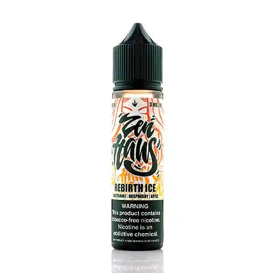 Liquido de vaporizador marca Zen Haus de durazno, frambuesa, manzana con menta 6mg (0.6%) 60ml