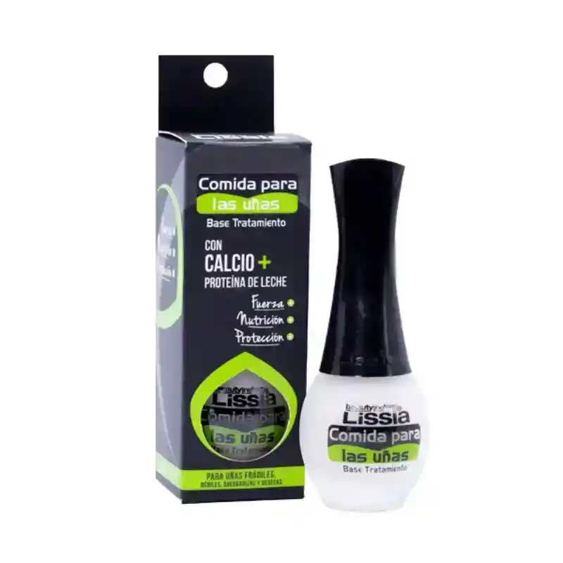 ESMALTE PARA UÑAS, COMIDA LAS UÑAS BASE TRATAMIENTO CON CALCIO + PROTEINA DE LECHE MARCA LISSIA te ayuda a evitar la descamación, des laminación y resequedad de las uñas, aumentando su resistencia, manteniendo así el buen estado de tus uñas.