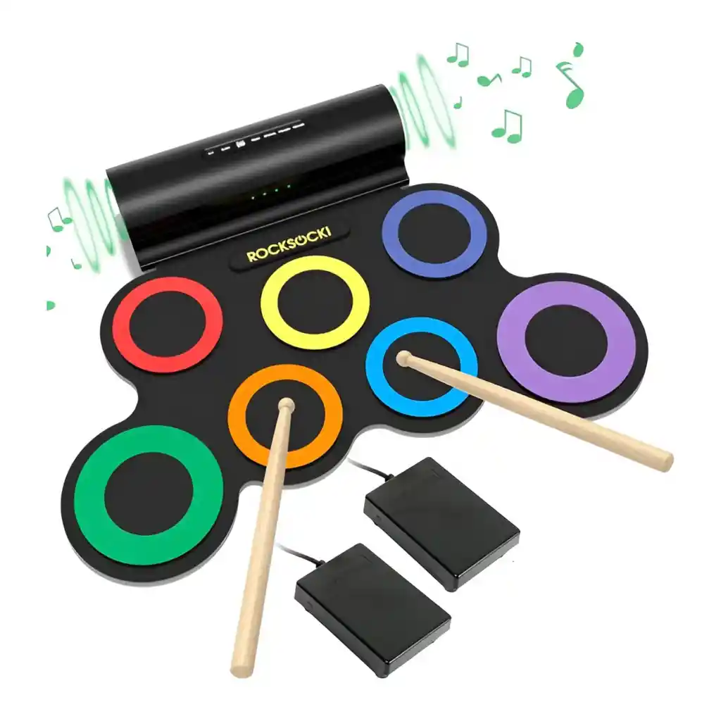 Somos TELEPRODUCTOS BOGOTA Productos 100% garantizados, años de experiencia en ventas online.! -Cuando realices la compra recibirás toda la información de contacto y datos para que puedas hacer seguimiento a tu producto.! ----------------------------------------------------------------------------------------------------------------------- Juego de batería electrónica de 7 almohadillas, tambor eléctrico flexible con conector de auriculares integrado en altavoz y batería recargable, baquetas, instrumento de percusión para niños o principiantes. batería electrónica para jugar y aprender a tocar ritmos diferentes. Es totalmente flexible y manejable, de pequeño peso y grandes oportunidades. Puedes tenerla en el escritorio y guardarla en cualquier lugar cuando no la uses gracias a su construcción de goma. Características: -Conjunto de batería electrónico tamaño compacto alimentado por USB, muy conveniente de llevar y usar. -Altavoz integrado con efecto de graves impactante, sin necesidad de altavoces externos. -Ideal para el aprendizaje y la práctica de tambores de niños o principiantes, también para entretenimiento familiar y reunión de amigos. -DISEÑO COMPACTO Y PLEGABLE: Este dispositivo está hecho de silicona, es muy liviano y compacto, a la vez que es muy fácil de almacenar. La batería puede alimentarse a través de USB -IDEAL PARA PRACTICAR: Tiene una demo pregrabada y un metrónomo con tiempos ajustables para ayudarte a entrenar perfectamente para convertirte en un baterista profesional.