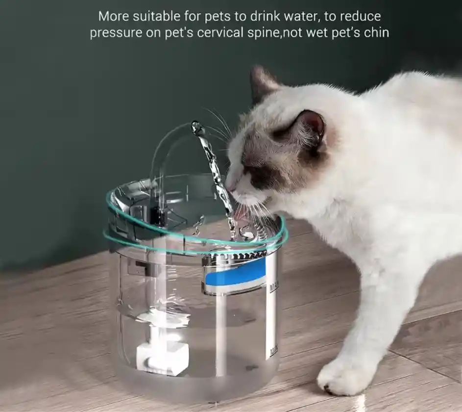 Tipo: Fuente para Gatos/Bebedero Gato/Bebedero Perro con Sensor Inteligente Regalo de Accesorios: Bolas de Juguete [Modalidad de Trabajo Dual con Sensor] Esta innovadora fuente para mascotas combina dos modos de operación: Activación por Sensor: El agua fluye automáticamente cuando tu mascota se acerca, incentivando la hidratación y proporcionando agua fresca al instante. Flujo Continuo: Modo tradicional para mantener el agua circulando constantemente. Además, la llave en forma de arco y el diseño de flujo de agua inclinado, característicos de esta fuente, reducen la presión sobre la columna cervical de tu mascota. [Capacidad Ideal y Diseño Sencillo] El tanque de la fuente tiene una capacidad de 1.8 litros, perfecta para perros y gatos de todos los tamaños. Es fácil de limpiar. Con esta capacidad, no tendrás que rellenar el agua con frecuencia, incluso si te ausentas por unos días. [Sistema de Filtración Cuádruple Mejorado] El diseño de pendiente inclinada y la estructura hueca forman un sistema de filtración de cuatro capas que elimina impurezas y proporciona agua limpia y fresca. Incluye dos filtros de repuesto adicionales para una mayor duración. ¡Tu mascota merece el agua más pura! ¡Ahora con Sensor Inteligente! Esta versión mejorada detecta la presencia de tu mascota y activa el flujo de agua, asegurando una hidratación más frecuente y divertida. Importante: Este producto no incluye adaptador de corriente. Puedes utilizar el cargador de tu teléfono celular.
