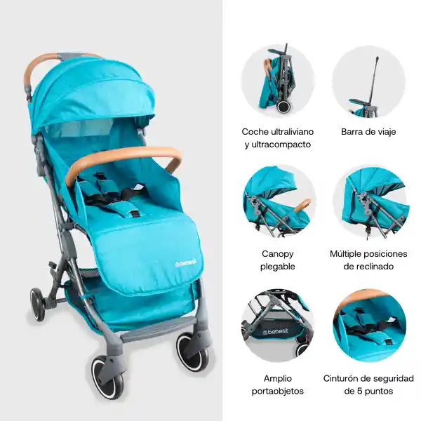 Ultra Compacto Sistema de Plegado a Una Mano Canopy Extensible Espaldar Reclinable Ultra Liviano Incluye Barra de Transporte Ideal Para Viajar Freno Centralizado Canasta Porta Objetos Telas Melange Barra Frontal de Seguridad Terminados Tipo Cuero.