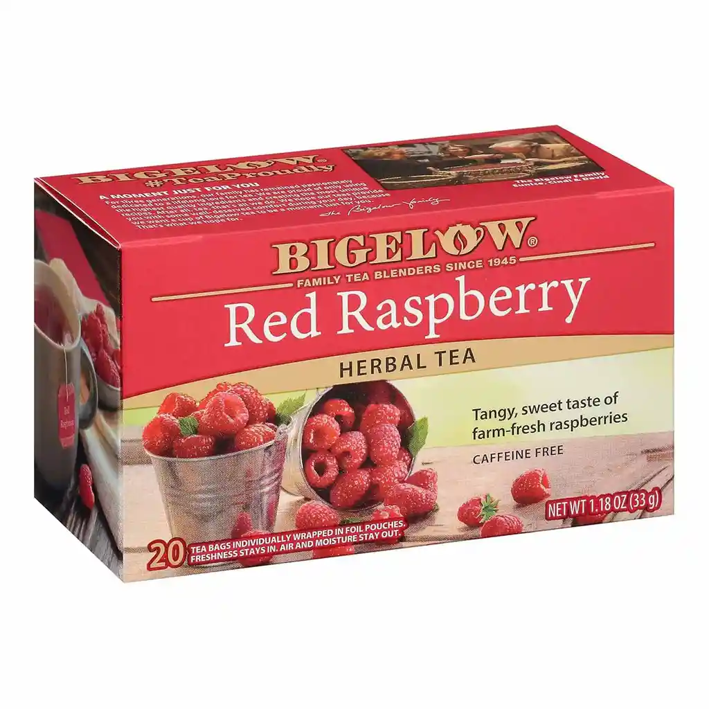 Bigelow Té Herbal Frambuesa Roja ofrece una infusión naturalmente dulce y ligeramente ácida con el sabor fresco de frambuesas, ideal para quienes buscan una bebida reconfortante sin cafeína. Su mezcla herbal apoya la hidratación, aporta antioxidantes y contribuye a una sensación de bienestar general, siendo perfecta para disfrutar en cualquier momento del día. Cada taza brinda un aroma afrutado y un sabor vibrante que ayuda a equilibrar el cuerpo, refrescar la mente y complementar una rutina saludable de manera deliciosa.