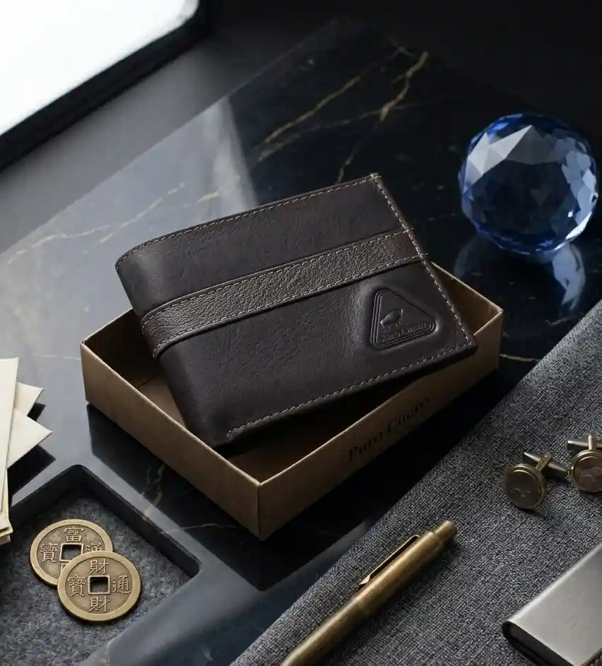 ✨ Billetera Hombre Cuero Genuino Café con Franja Café ✨