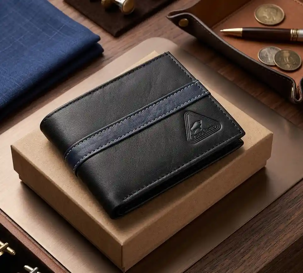 ✨ Billetera Hombre Cuero Genuino Negra con Franja Azul Oscuro ✨