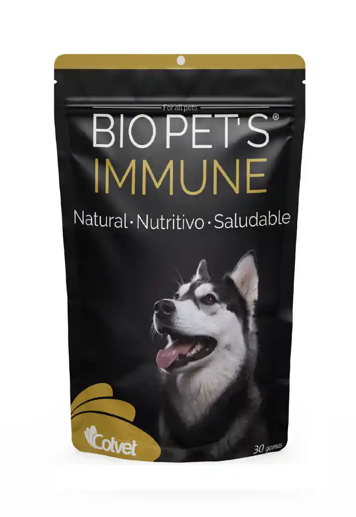 Bio Pet's Immune es un suplemento para gatos y perros que fortalece su sistema inmunológico. Actúa mejorando la producción de glóbulos blancos y las defensas del organismo para mitigar los efecto de patógenos. Utilizado en mascotas con deficiencias inmunológicas o que están expuestas a otras mascotas en ambientes como guarderías o escuelas caninas. Es un suplemento alimenticio a base de extractos botánico, levaduras, prebioticos, probioticos, minerales, aminoácidos, mananoligosacaridos y fructooligosacáridos. Contiene 60 gomas aprox.