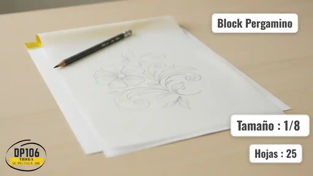 Bloc de papel pergamino para dibujo, 25 hojas de 1/8:
